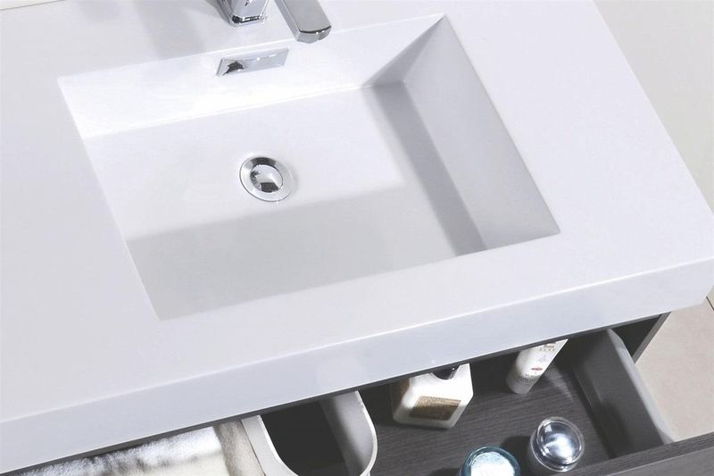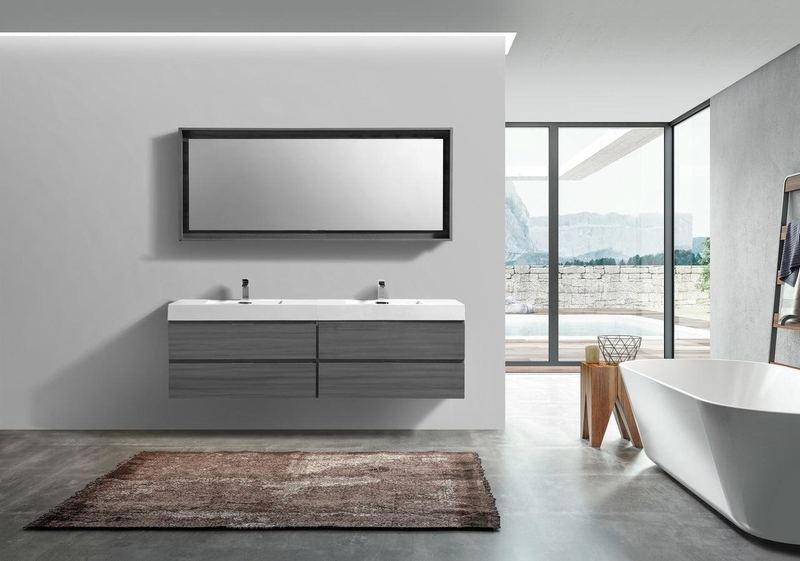 The Bliss is one of the most elegant modern bathroom vanities around. This 80 inch double sink model comes with Reinforced Acrylic Sinks and Wood Veneer Construction, making it fully moisture and waterproof. With high quality European Hardware, the Bliss series also provides smooth soft-closing operation on four fully functional drawers.