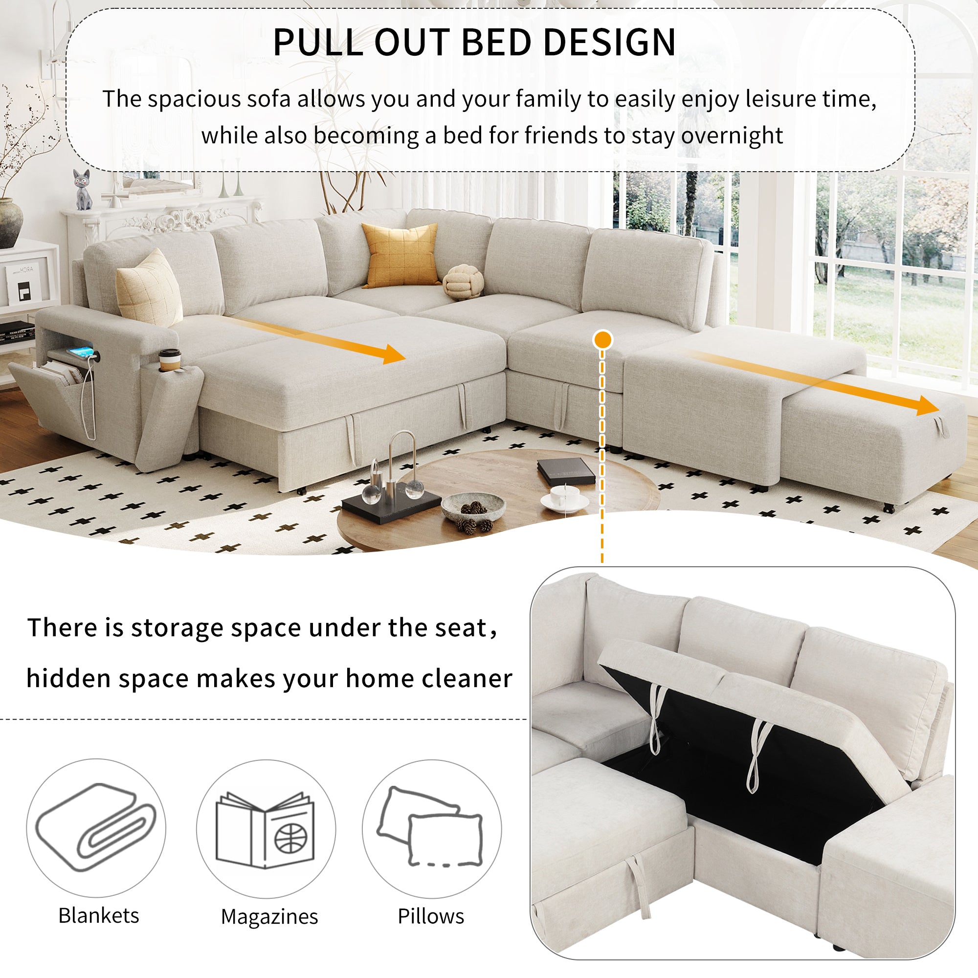 Snuggle up with your loved one, enjoy a cozy movie night with the built-in cup holder and USB port, and relax in the soft, thick cushions. The ample storage space keeps your haven organized and clutter-free.